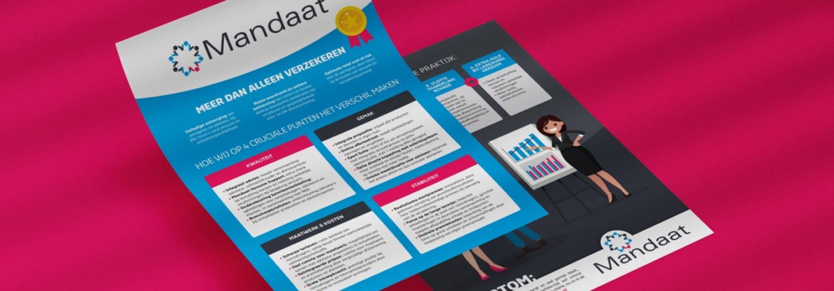 Om als adviseur tijdens een verkoopgesprek een visuele leidraad te hebben, mochten we bij lekker in vorm deze pitchkaart vormgeven over de pluspunten van Mandaat. Door de verzorgde opmaak kan de kaart na afloop van het gesprek ook prima bij de klant achterblijven om nog eens rustig nagelezen te worden.