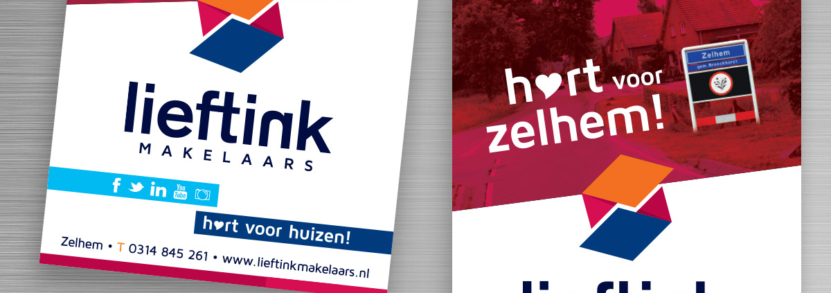 Een betrokken makelaar als Lietfink Makelaars wordt vanzelfsprekend vaak gevraagd voor deelname aan lokale evenementen en plaatsing in lokale media. Speciaal hiervoor ontwikkelde lekker in vorm advertenties, waarbij de pay-off “hart voor huizen” doorvertaald wordt naar specifieke plaatsen in het werkgebied van Lieftink Makelaars. Inclusief lokale, herkenbare fotografie.
