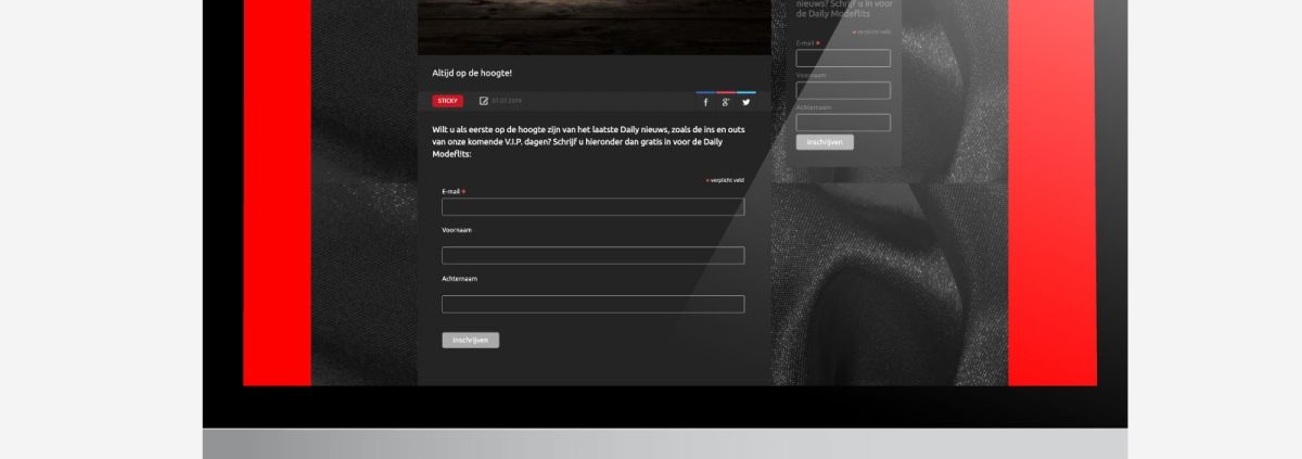 Met de Daily Modeflits in je inbox ben je altijd op de hoogte van het laatste nieuws omtrent Daily Women’s Wear. Om geïnteresseerden te attenderen op de voordelen van deze nieuwsbrief zorgden we bij lekker in vorm voor een inschrijfpagina op de website en een uitnodiging op social media.