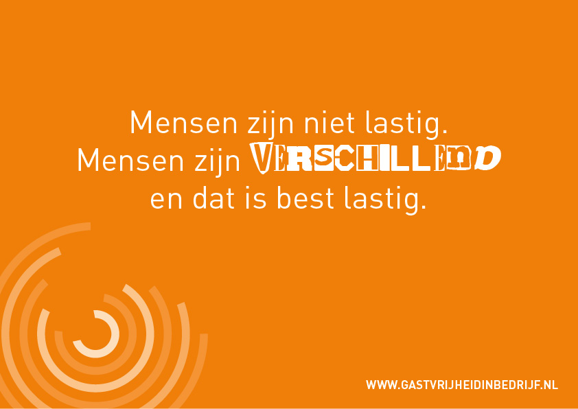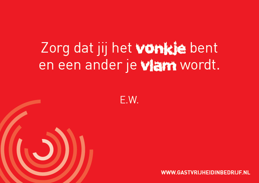 Via inspirerende quotes moedigt Gastvrijheid in Bedrijf iedereen aan om complimenteuzer en gastvrijer te zijn. De quotes verschijnen op social media en zijn als sets te bestellen in gedrukte vorm. Er verschijnen regelmatig nieuwe varianten. lekker in vorm maakt deze quotes op binnen de huisstijl en voorziet ze geregeld van simpele maar doeltreffende speelsheden.