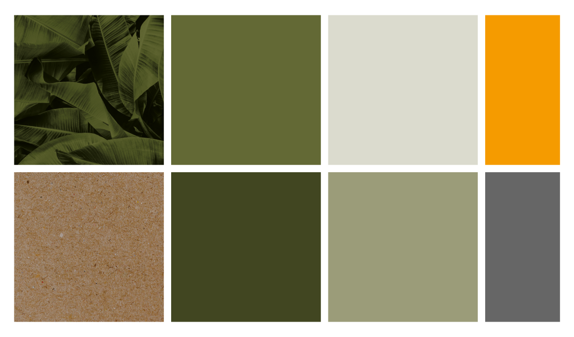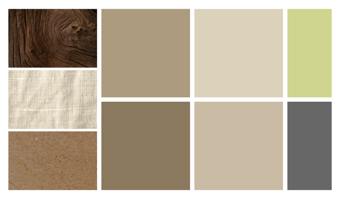 Op hun verzoek hebben we daarom bij lekker in vorm de bestaande elementen uit de huisstijl omgezet naar minder felle en meer aardse kleuren en structuren. Zo maken de groene palmbladeren voortaan plaats voor vergrijsd hout en offwhite linnen.