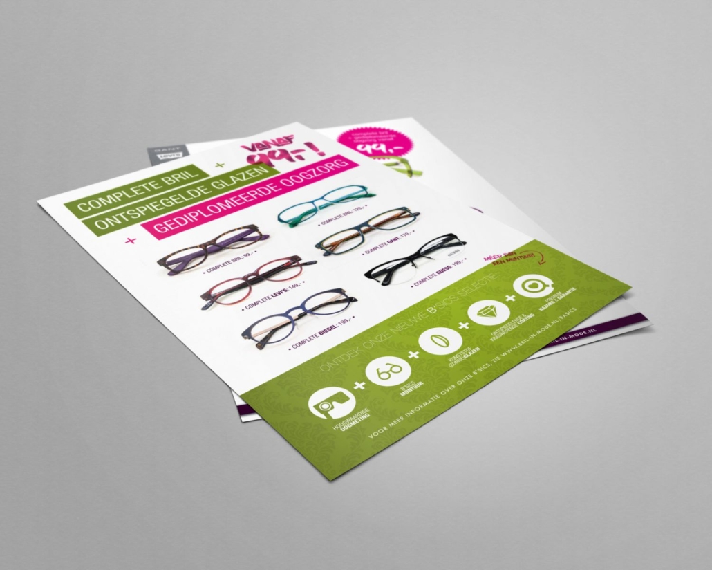 Introduceerden we de nieuwe B’SICS monturen van Bril-in-Mode enkele maanden geleden al stevig met een reclamecampagne, dit kwartaal doen we het nog even dunnetjes over via een dubbelzijdige repeatflyer met daarin de belangrijkste voordelen van een B’SICS montuur op een rijtje.