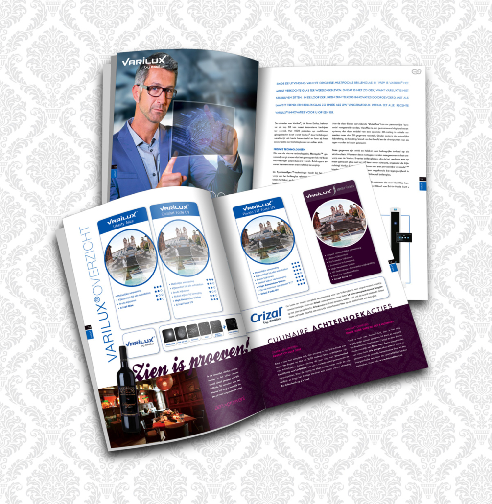 Bril-in-Mode geeft meerdere malen per jaar een eigen magazine uit, genaamd Retina. Hierin komen diverse trends aan bod, maar er is ook uitgebreid aandacht voor hoogwaardige oogzorg. lekker in vorm verzorgt niet alleen de opmaak, maar ook de eindredactie en eventuele productfotografie. In deze uitgave staan o.a. ecologisch verantwoorde monturen en maatschappelijk verantwoord ondernemen centraal.
