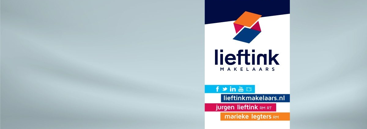 Omdat Lieftink Makelaars nog wel eens op een beurs te vinden is, zoals op de Startersdag van de Rabobank, was er behoefte aan een opvallende roll-up-banner met de juist identiteit. lekker in vorm dacht mee over inhoud en vorm, en regelde vervolgens de productie.