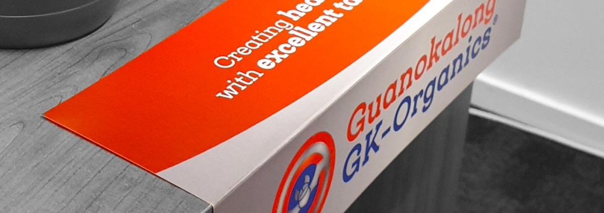 Om de winkelende consument extra te attenderen op de producten van Guanokalong en GK-Organics ontwierpen we bij lekker in vorm deze schapstrook, uitgevoerd in dun kunststof (YUPOBlue®). Extra handig, want deze scheurt niet en is afwasbaar. In combinatie met een wobbler biedt Guanokalong / GK-Organics zo fijne opties voor resellers om hun producten uit te lichten.