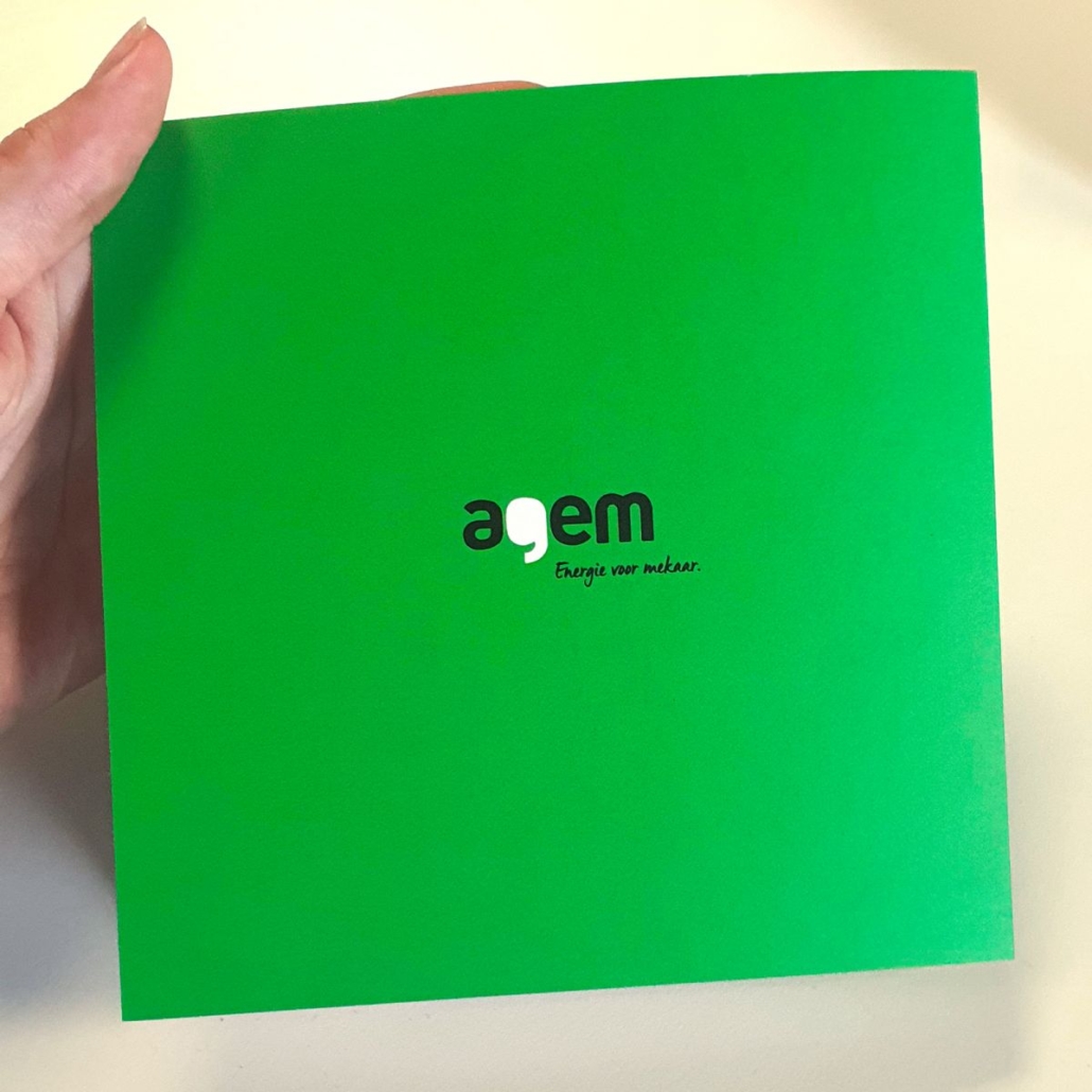 Omdat Agem betrokken is bij haar klanten, heeft het team regelmatig behoefte aan een wenskaartje voor speciale gelegenheden. Daarom mochten we bij lekker in vorm deze creatieve set wenskaarten ontwerpen in Agem huisstijl. Het bekende Aagje is uit de voorzijde gestanst en geeft daardoor alvast een doorkijkje naar een deel van de wens. De rest van de boodschap wordt er vanzelfsprekend persoonlijk met de hand bijgeschreven.