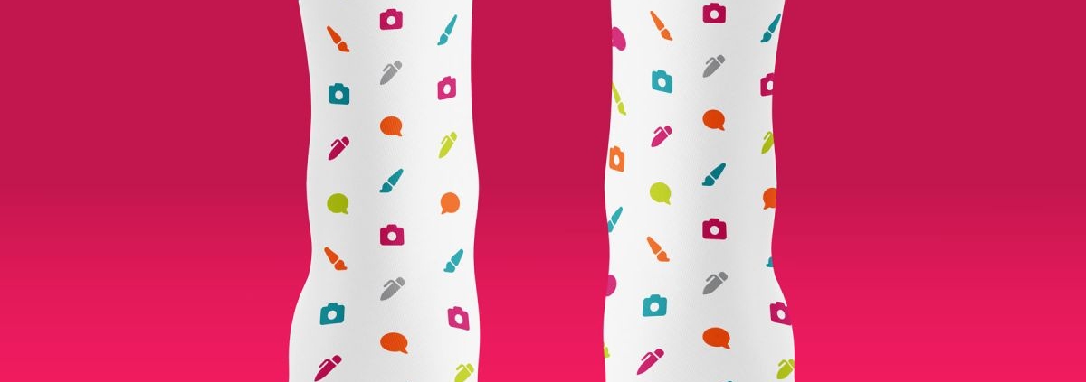 Voor ons eigen jubileum probeerden wij dat, als oude sokken met frisse ideeën, eens voor je uit. We lieten de onderzijde borduren met ons woordmerk, een niet meteen in het oog springende plek. De rest van de sok vulden we met kleurrijke iconen die je als klant kunt herkennen van onze offertes en facturen. Allemaal natuurlijk in onze herkenbare huisstijlkleuren. Zo zijn de sokken zowel commercieel als draagbaar.