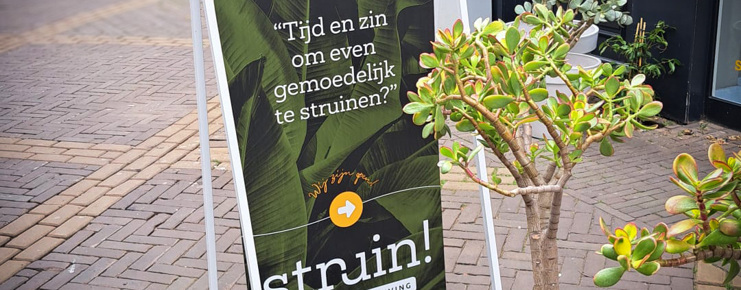 Bij struin fair fashion staan sinds kort mooie, custom made stoepborden voor de deur die voorzien kunnen worden van makkelijk te wisselen magneetplaten. Bij lekker in vorm mochten we er een mooi ontwerp voor maken om voorbijgangers mee aan te spreken.