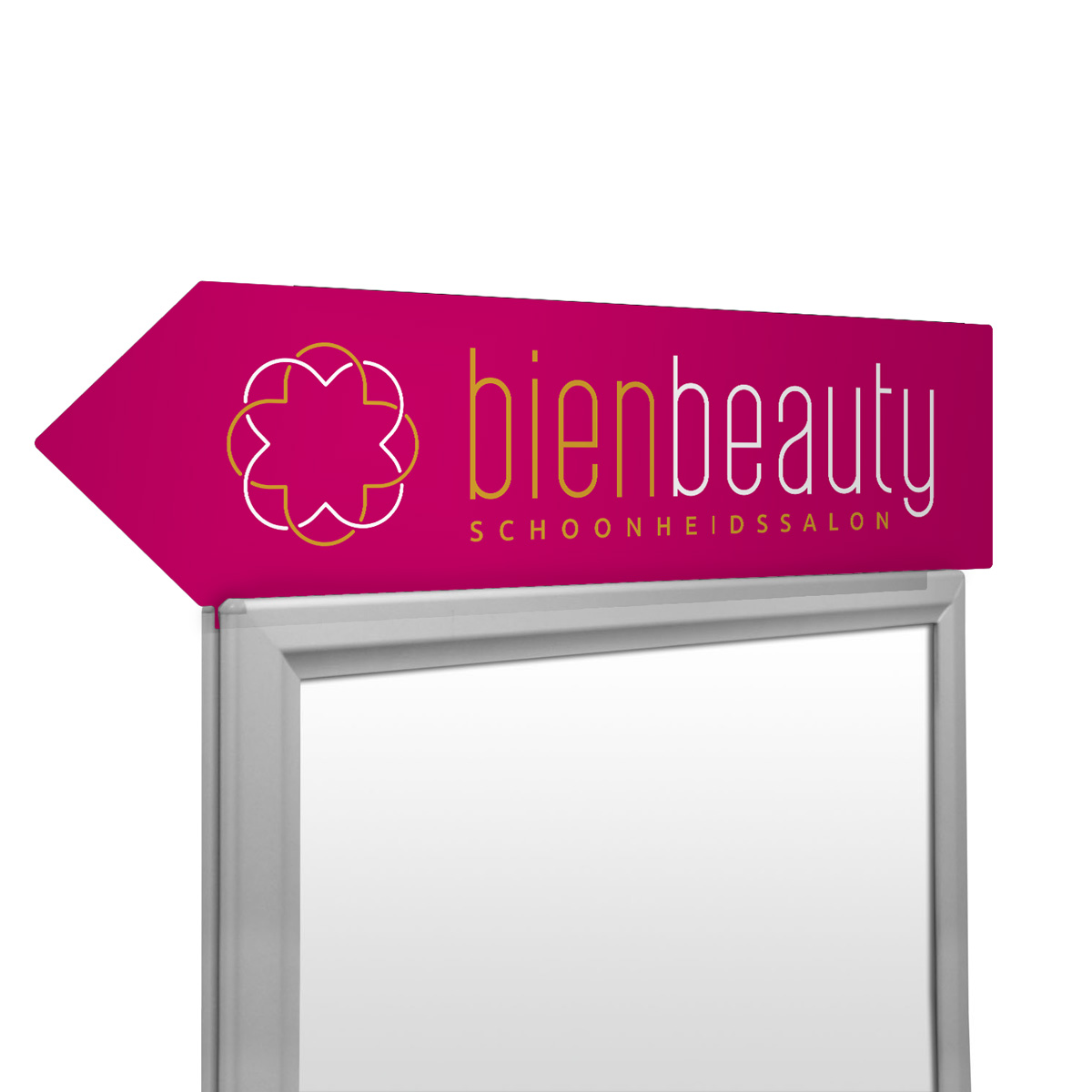 Omdat de knusse salon van Bien Beauty vanaf de weg niet direct in het oog springt, heeft een opvallend stoepbord groot effect op voorbijgangers en op klanten die op zoek zijn naar de ingang van de schoonheidssalon.
