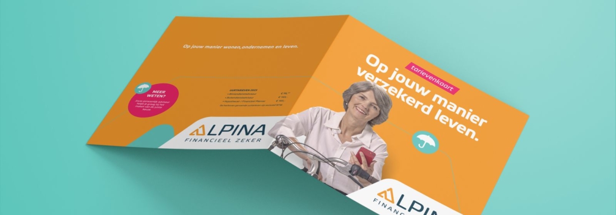 Op jouw manier verzekerd leven? Op deze handige tarievenkaart van Alpina zie je alle mogelijke diensten en bijbehorende prijzen overzichtelijk op een rijtje. Dit overzicht bereikten we bij lekker in vorm door zaken logisch te clusteren in tabellen en met diverse kleuren extra attentiewaarde te geven.