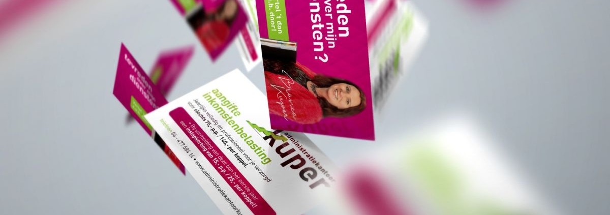 Door middel van een handig tipkaartje op visitekaartformaat maakt Administratiekantoor Kuper het voor tevreden klanten extra makkelijk om bekenden door te verwijzen voor hun aangifte inkomstenbelasting. Met de aantrekkelijke instapkorting is dat het eerste jaar extra aanlokkelijk.
