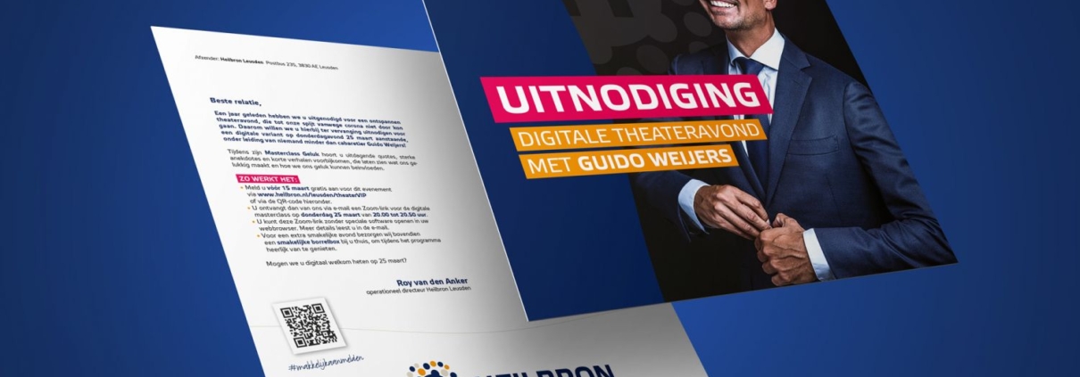 Na een jaar met beperkte mogelijkheden voor persoonlijk klantcontact vonden Heilbron Leusden en Emmeloord het hoog tijd voor een digitaal samenzijn, onder leiding van niemand minder dan cabaretier Guido Wijers! Bij lekker in vorm mochten we voor dit digitale evenement een mooie uitnodiging ontwerpen en laten verzenden.