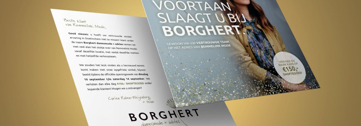 De komst van Borghert is goed nieuws voor klanten van het gestopte Remmelink Mode: Borghert neemt namelijk het stokje over vanuit dezelfde locatie, met veelal dezelfde merken en met hetzelfde verkoopteam!