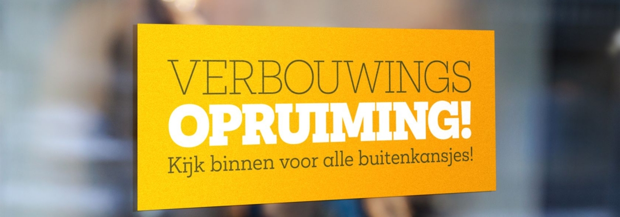 Struin! gaat zich klaarmaken voor een winkel 2.0. Voor het verbouwen willen eigenaresses Mirte & Hadassa nog even flink knallen om de winkel zo leeg mogelijk te krijgen. Bij lekker in vorm mochten we hiervoor een opvallende raamsticker en stoepbordposter ontwerpen.