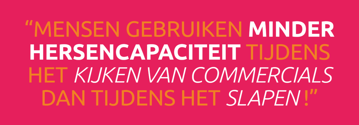 “Mensen gebruiken minder hersencapaciteit tijdens het kijken van commercials dan tijdens het slapen.”