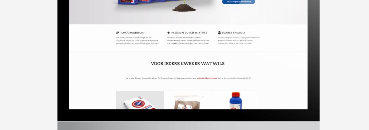 De nieuwe website van Guanokalong / GK-Organics is in de lucht! Bij lekker in vorm zorgden we voor de installatie van een zogenaamd supertheme en we brachten dit vervolgens helemaal lekker in vorm binnen de Guanokalong huisstijl. Alle producten hebben voortaan hun eigen pagina met een complete uitleg naar behoefte.