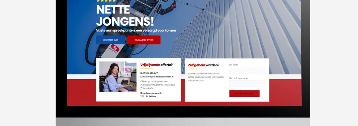 De website van Schonewille Bedrijfsdiensten is online! Bij lekker in vorm regelden we de installatie van een WordPress template en voorzagen we deze vervolgens van de benodigde look en feel in de vorm van banners, huisstijlitems en huisstijlkleuren. Ook schreven we alle teksten, passend bij het onderscheidende merkverhaal van het schoonmaakbedrijf uit Zelhem.