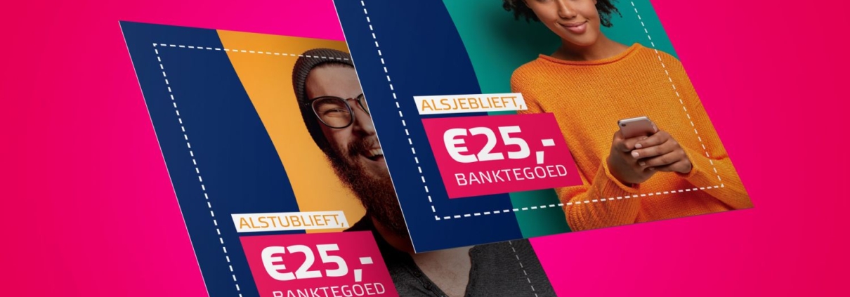 Een Regiobank-rekening afsluiten via Heilbron Aalten was nog nooit zo leuk: je krijgt je eerste €25,- banktegoed tijdelijk cadeau van ze! Bij lekker in vorm mochten we deze actie vormgeving door middel van een advertentie in de lokale krant (richting nieuwe klanten) en direct mailingkaarten naar bestaande klanten die bijvoorbeeld nog geen spaarrekening of juist geen betaalrekening bij Regiobank hebben lopen. Voor de doelgroep van de Regiobank Jongerenrekening maakten we een alternatieve voorzijde.