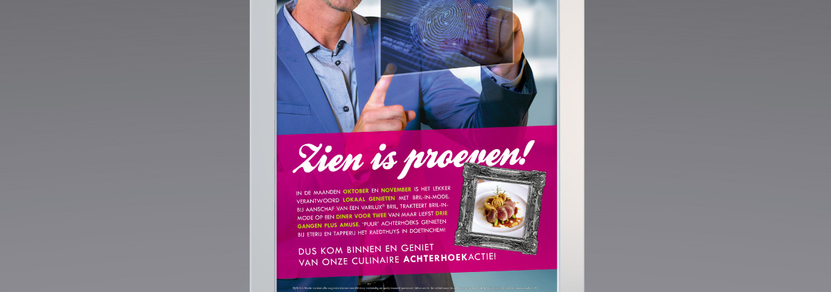In de maanden oktober en november is het lekker lokaal genieten met Bril-in-Mode. Bij aanschaf van een Varilux® bril, trakteert Bril-in-Mode op een Diner voor Twee van maar liefst drie gangen plus amuse. ‘Puur’ Achterhoeks genieten bij eterij en tapperij het Raedthuys in Doetinchem! lekker in vorm gaf vorm aan de streekcampagne.