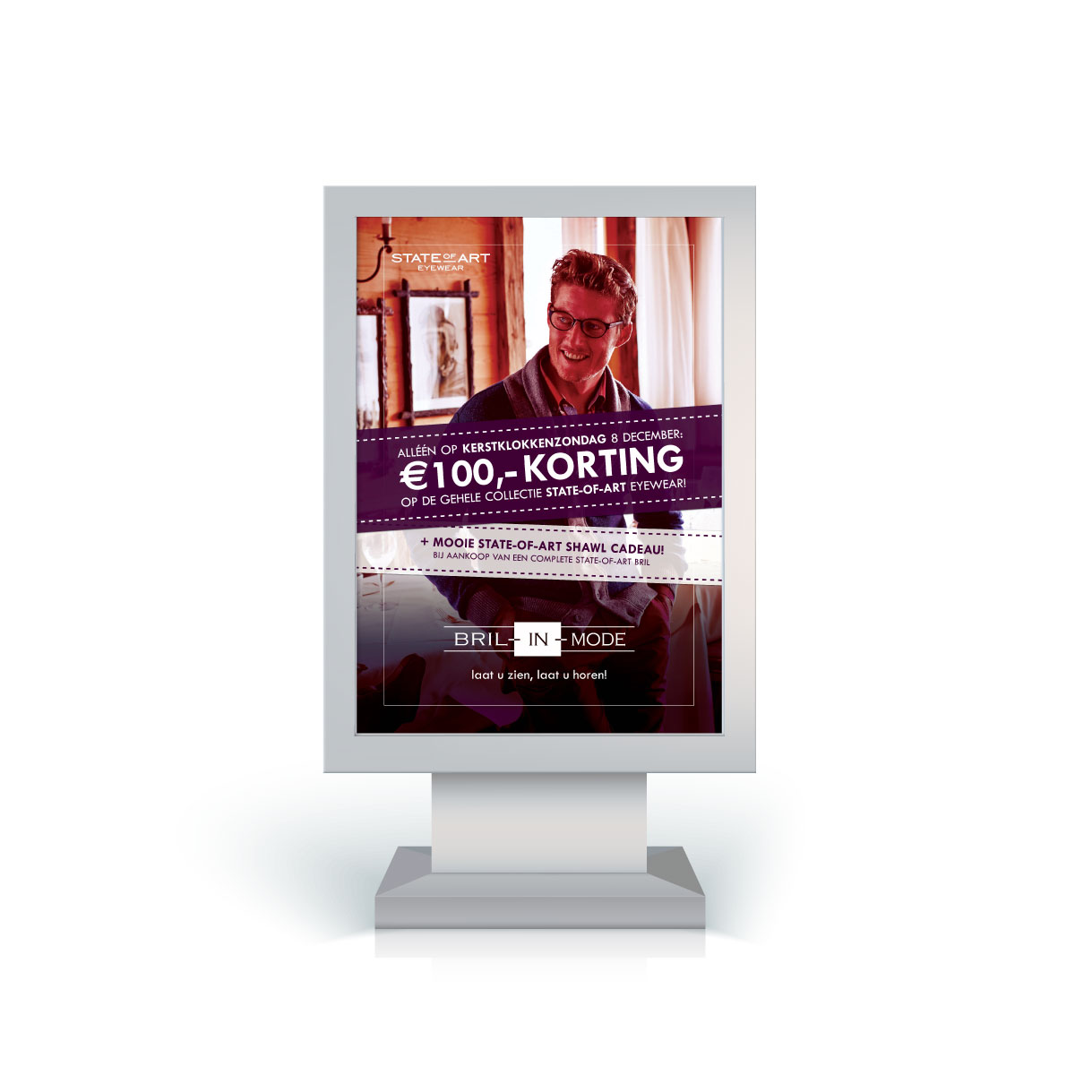 Elke eerste zondag na Sinterklaas is het Kerstklokkenzondag in Lichtenvoorde. Een evenement dat je niet mag missen. Met elk jaar weer verrassende nieuwe activiteiten, entertainment, muziek en een traditionele kerstmark. Ook het team van Bril-in-Mode Lichtenvoorde maakt er ieder jaar een speciale dag van. lekker in vorm verzorgde de grafische vormgeving van de actie.