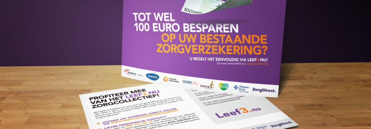 In samenwerking met ouderenorganisatie Leef3.nu organiseert Heilbron speciale zorgspreekuren voor senioren, prettig in de buurt. Via posters en flyers wordt iedereen geattendeerd op deze spreekuren en op het voordeel van een zorgcollectief. Bij lekker in vorm ontwierpen we deze items in herkenbare Leef3.nu huisstijl.